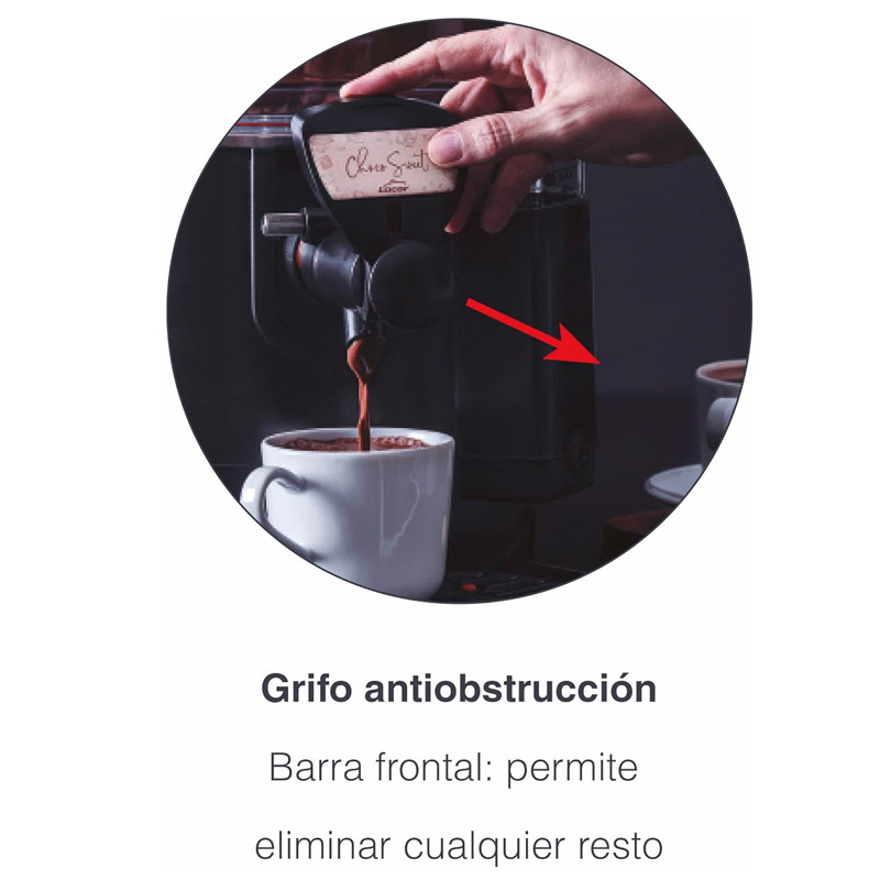 Destacamos su innovador grifo antigoteo y antiobstrucción, que facilita un vertido limpio y preciso, evitando derrames y acumulaciones de chocolate. Este diseño no solo mejora la experiencia de servicio, sino que también simplifica la limpieza, ahorrándote tiempo y esfuerzo.