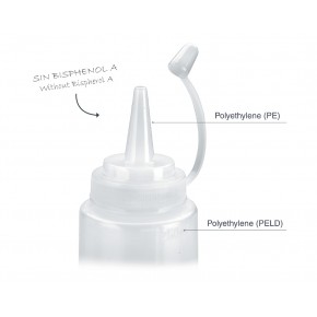 La botella biberón dosificadora de polietileno translúcido combina precisión, resistencia y facilidad de uso. Proporciona precisión, higiene y eficiencia en la dosificación de líquidos. Esta botella biberón es perfecta para almacenar y dispensar aceites, vinagres, salsas... y para decorar los platos y elaboraciones de pastelería. Dibuja, adorna y personaliza con estilo tus platos.