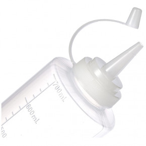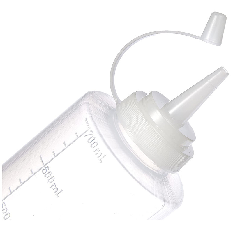 Fabricada en polietileno de alta calidad, esta botella biberón profesional ofrece una excelente resistencia al uso continuo, así como una gran flexibilidad que permite controlar con precisión la cantidad de producto dispensado. Su cuerpo translúcido facilita la visualización del contenido en todo momento, permitiendo al operario identificar rápidamente el nivel restante y optimizar los tiempos de trabajo en cocina o en el obrador.