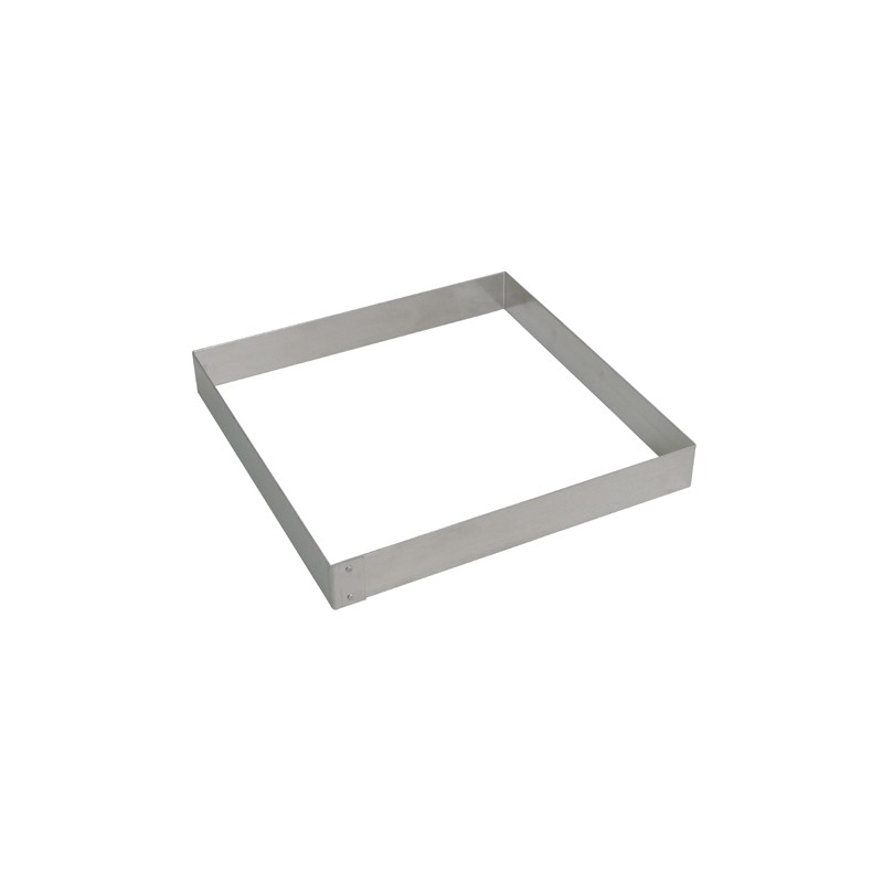 El molde aro cuadrado está disponible en diferentes medidas para adaptarse a todo tipo de elaboraciones y necesidades de producción. Su robustez garantiza una larga vida útil incluso ante un uso intensivo, convirtiéndolo en una inversión segura para profesionales y amantes de la repostería.
