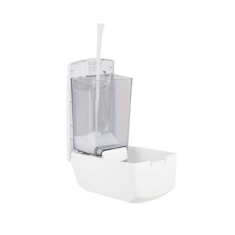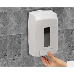 Este dosificador mural de plástico está diseñado para dosificar geles desinfectantes, jabones líquidos o lociones de limpieza de forma controlada, garantizando un uso eficiente y económico del producto. Su sistema de accionamiento manual permite dispensar la cantidad exacta de jabón sin desperdicio, asegurando una limpieza de manos rápida y cómoda en cualquier zona de trabajo o aseo profesional.