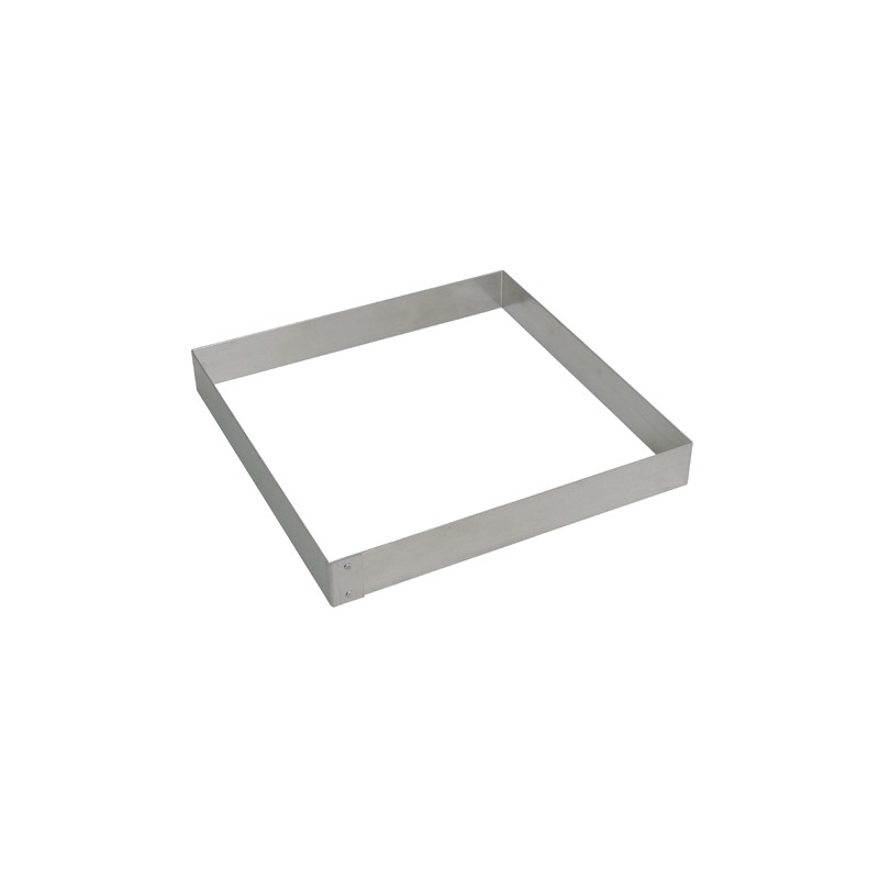 El molde aro cuadrado está disponible en diferentes medidas para adaptarse a todo tipo de elaboraciones y necesidades de producción. Su robustez garantiza una larga vida útil incluso ante un uso intensivo, convirtiéndolo en una inversión segura para profesionales y amantes de la repostería.