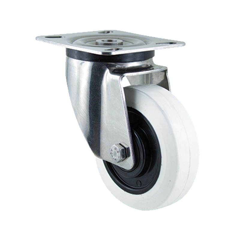 Rueda para carros giratoria goma blanca con placa de 100 mm.