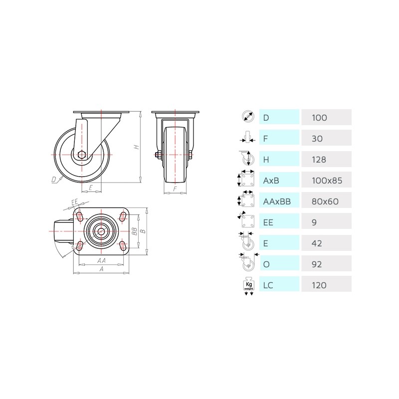 Estas ruedas aseguran también un gran trabajo en los congeladores y en temperaturas de hasta -40 ° C y garantizan una alta resistencia contra el choque térmico causado por el rápido aumento o la reducción de la temperatura, lo que permite que estas ruedas resistan las variaciones repentinas de temperaturas, lo que permite soportar saltos de 340 ° C en menos de 60 segundos, ya sea de frío a caliente o de retroceso.