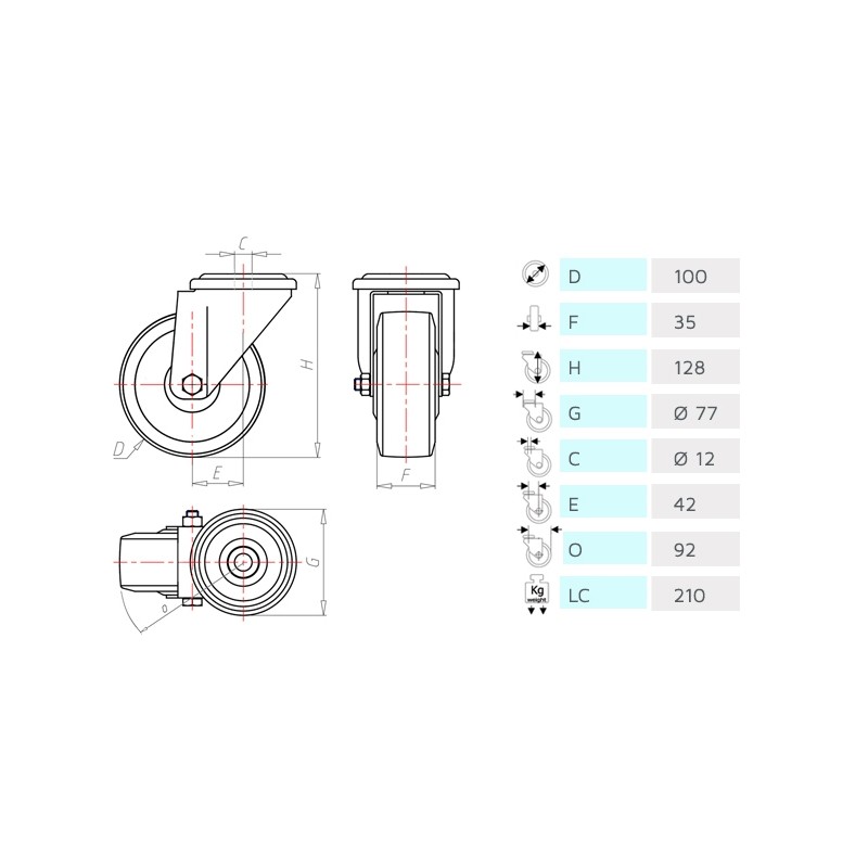 Estas ruedas aseguran también un gran trabajo en congeladores y temperaturas de hasta -40°C y garantizan una alta resistencia al choque térmico causado por el rápido aumento o reducción de la temperatura, de hecho, el nuevo material Ditherm® permite que estas ruedas resistan a la variación repentina de temperaturas, lo que permite soportar saltos de 340°C en menos de 60 segundos, ya sea de frío a calor o al revés.