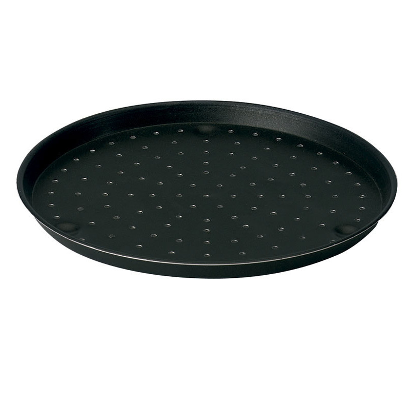 Bandeja aluminio antiadherente perforada para pizzas 36 cm.