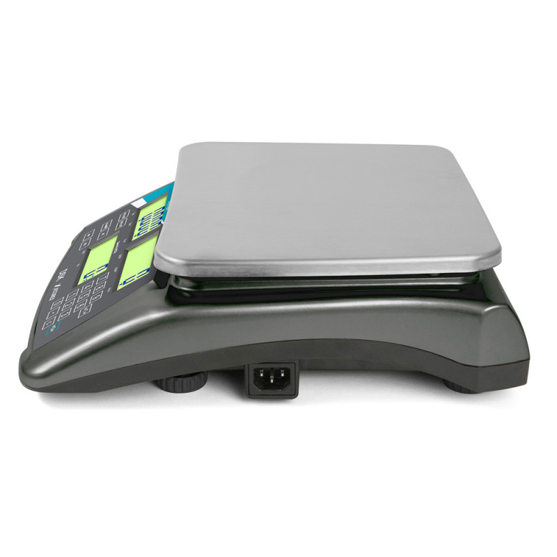 Se alimenta con red de 220V y también con su batería interna incluida que se recarga por el mismo cable de red. Mientras se está utilizando la balanza conectada a la red se está realizando la recarga de su batería, de forma simultánea.