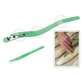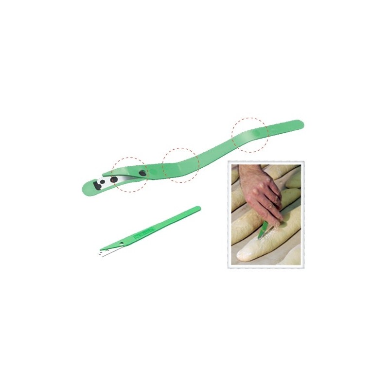 Fabricada con acero inoxidable de alta calidad, la cuchilla mantiene un filo duradero que soporta el uso intensivo en obradores profesionales sin perder eficacia. Su mango flexible con tres puntos de inflexión permite un manejo ergonómico y preciso, adaptándose a los movimientos de la mano y ofreciendo un control total sobre la profundidad y el ángulo de los cortes. Esta innovación reduce la fatiga del operario durante el trabajo continuo y permite realizar greñados más complejos y creativos en distintos tipos de pan.