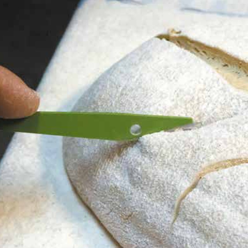 Cuchilla profesional para greñar el pan, ideal para hacer cortes limpios y rápidos en la masa.