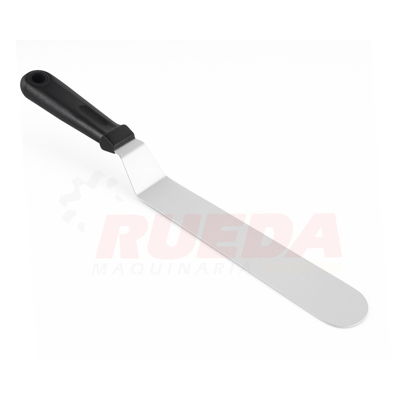 Ver todos Recambios Cerradoras de bolsas Cortadoras de Pan Dosificadoras de Magdalenas Etiquetadoras Mata Mosquitos Soldadoras de bolsas VariosEspátula pastelera acodada mango sólido 24 x 4 cm.