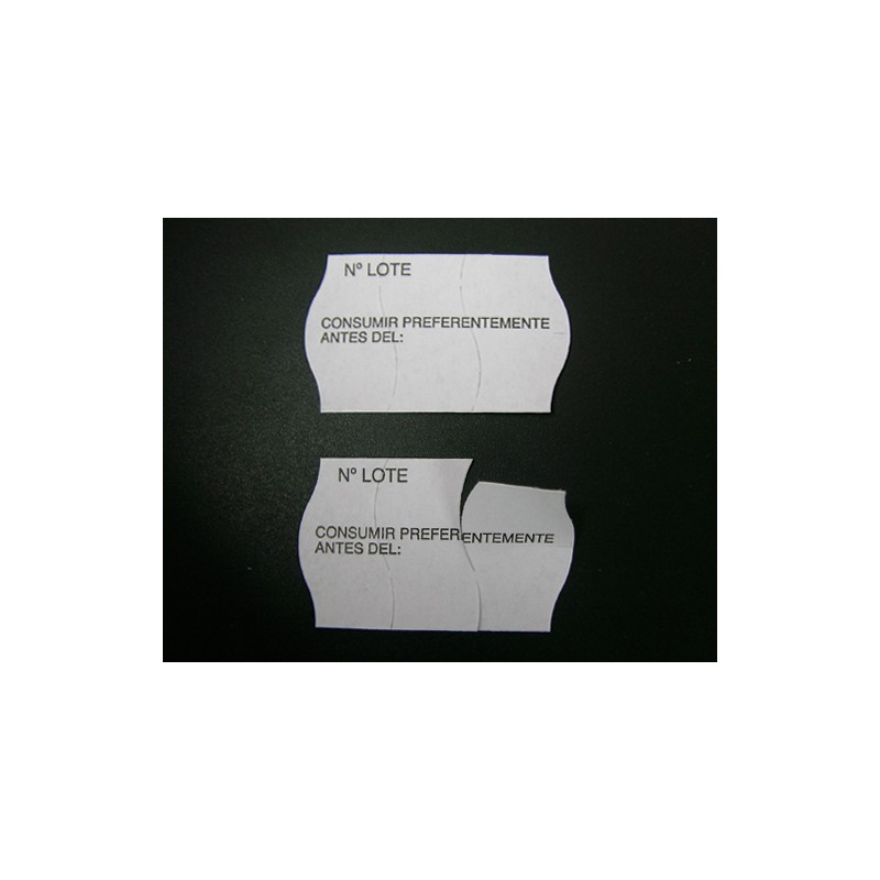Ver todos Recambios Cerradoras de bolsas Cortadoras de Pan Dosificadoras de Magdalenas Etiquetadoras Mata Mosquitos Soldadoras de bolsas VariosEtiqueta preimpresa antifraude 26 x 16 mm.
