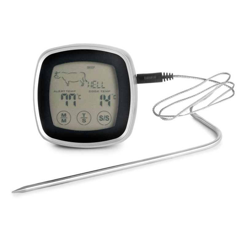 Este dispositivo es la herramienta definitiva para garantizar que tus asados, barbacoas y filetes alcancen la perfección, siempre jugosos por dentro y dorados por fuera.
