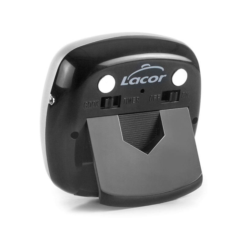 Su gran pantalla de visualización táctil ofrece una lectura clara e instantánea. Además, el diseño magnético con dos potentes imanes en la parte trasera te permite colocarlo cómodamente en la puerta del horno, o cualquier superficie metálica, manteniéndolo siempre a la vista y al alcance. Si prefieres, el soporte retráctil permite colocarlo sobre cualquier superficie plana.