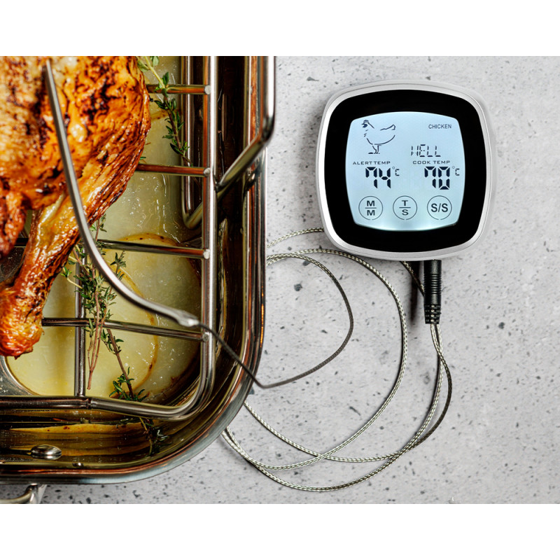 Gracias a su función de alarma Inteligente, recibirás un aviso sonoro justo en el momento exacto en que la comida alcance la temperatura ideal. Nunca más tendrás que abrir el horno o levantar la tapa de la barbacoa innecesariamente, asegurando un calor constante y resultados óptimos.