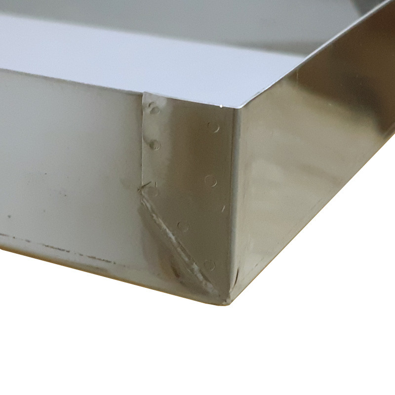 Molde en acero inoxidable, con esquinas plegadas y soldadas por puntos.