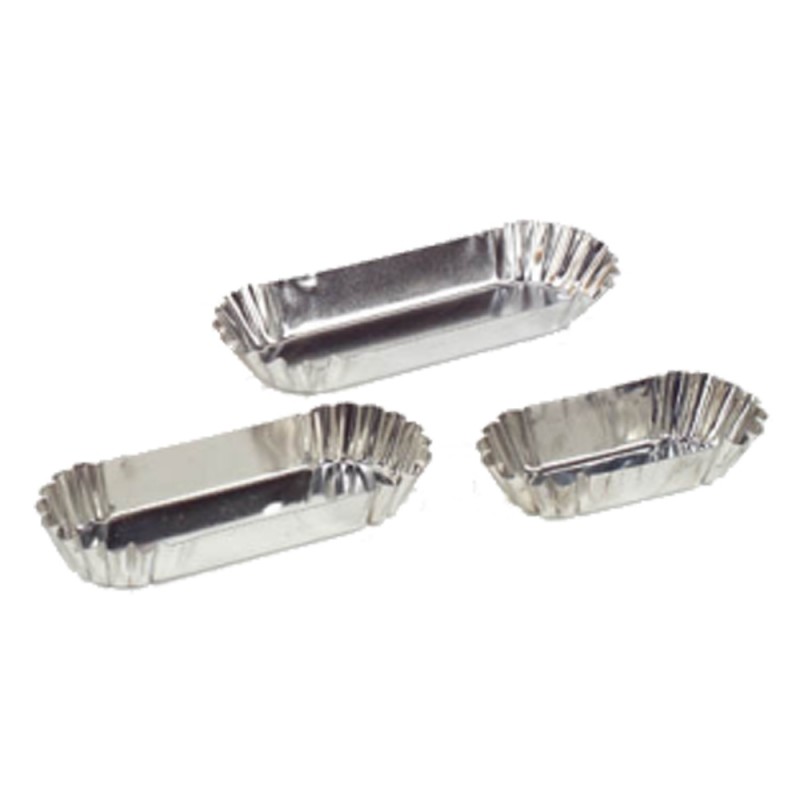 Molde ovalado de hojalata con esquinas onduladas, ideal para magdalenas, agujas y diversas piezas de repostería individual.