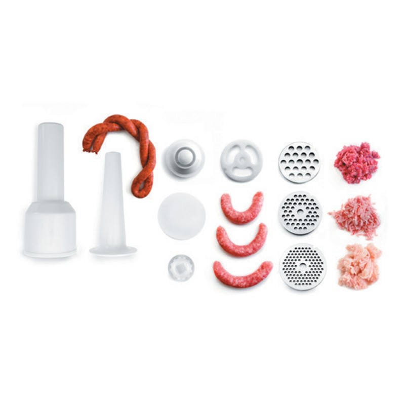Esta máquina no solo es perfecta para picar carne, sino que también incluye cuatro accesorios para embutidos, lo que permite crear sus propias salchichas, chorizos y otros productos embutidos con facilidad. Esto le ofrece una mayor versatilidad y control sobre los productos que ofrece a sus clientes.