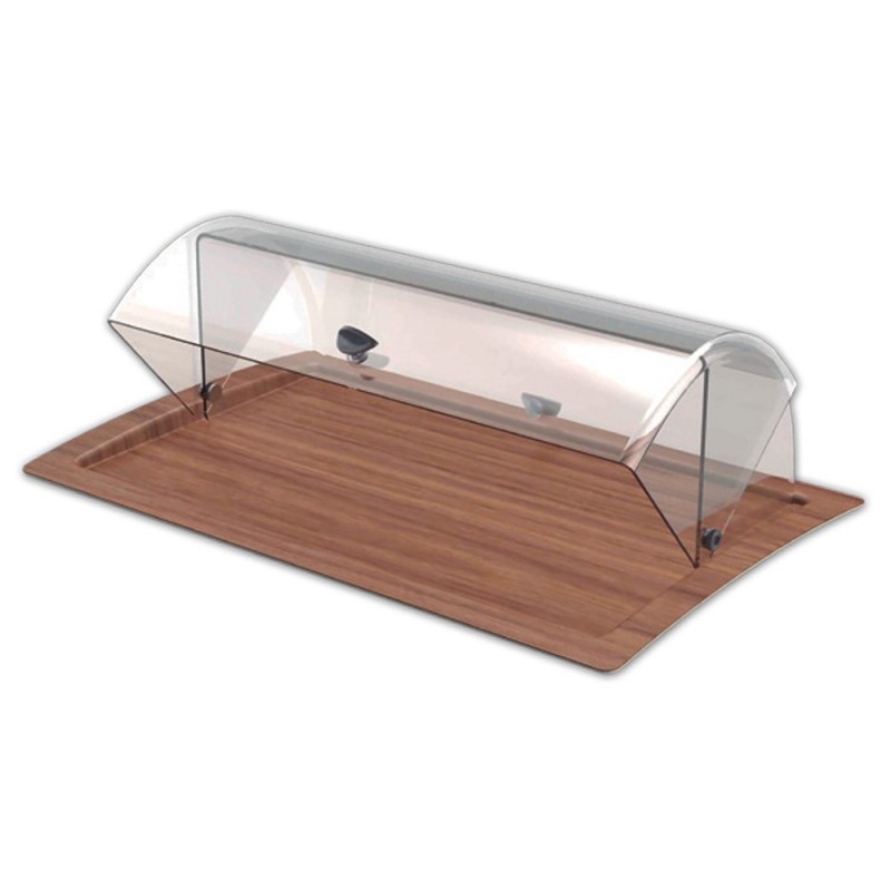 La tapa transparente basculante de plástico permite una visualización clara del contenido. Gracias a su sistema basculante, con pomo metálico por ambos lados, el acceso al interior es rápido y cómodo para el personal, agilizando el servicio en horas punta. Además, protege los productos del polvo, manipulaciones externas y contaminantes, contribuyendo al cumplimiento de las normativas de higiene alimentaria.
