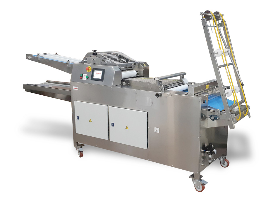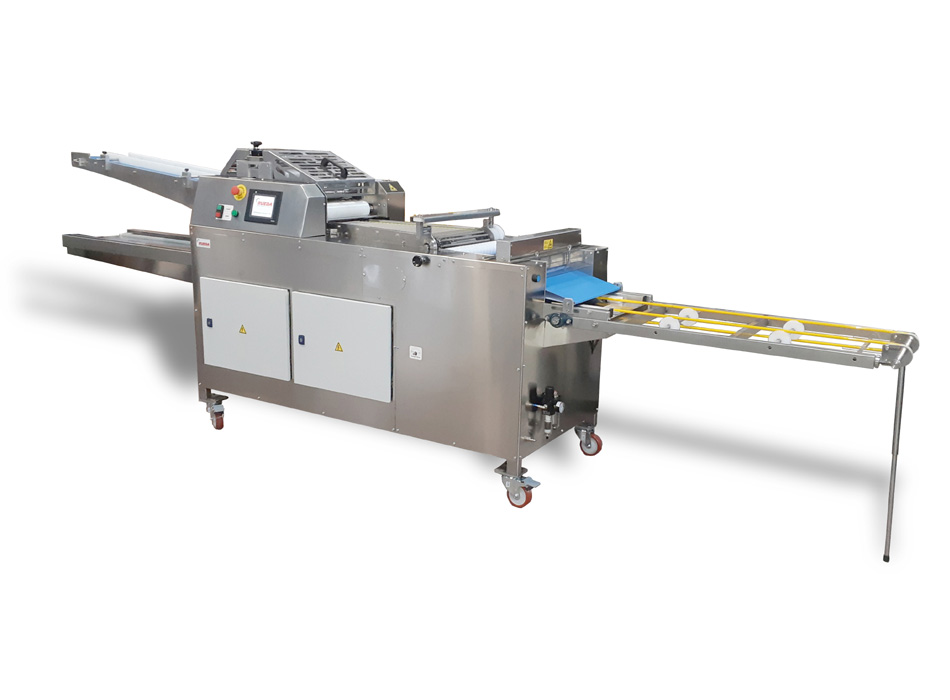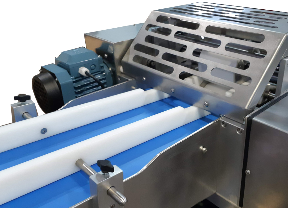 Machine specially designed for soft masses with high hydration or with a lot of oil such as the Valencian rosquilleta, salty snacks, etc. The horizontal work system ensures that the dough does not break or break. The separation of the product is done by means of a spring separator, it is easily adjustable, being able to open or close the separation simply with a control and without stopping the machine. Both the rolling mill and the forming cylinder are replaceable without tools, this gives us the possibility of adapting to different working widths. Automatic positioning in the tray, being able to select the separation that we want to leave between products or the distance to the edge of the tray indistinctly. Advanced electronic control with memorization of all configuration parameters of each product, including the strength of the cut. Manufactured with high levels of quality in all components for continuous work.